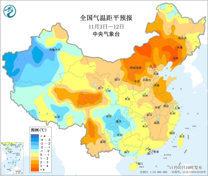 未来10天(11月3-12日),西南地区大部、江南中西部及华南西部等地累计降水量有25~60毫米,其中云南中部、四川南部、贵州西南部、湖南西北部及海南岛东部的部分地区有80~120毫米,海南东部局地超过200毫米;此外,新疆西北部、东北地区东部、江汉、江淮和黄淮西部等地的部分地区累计降水量有10~20毫米,局地30毫米左右。上述大部地区降水量较常年同期偏多4~8成,部分地区偏多1倍以上。